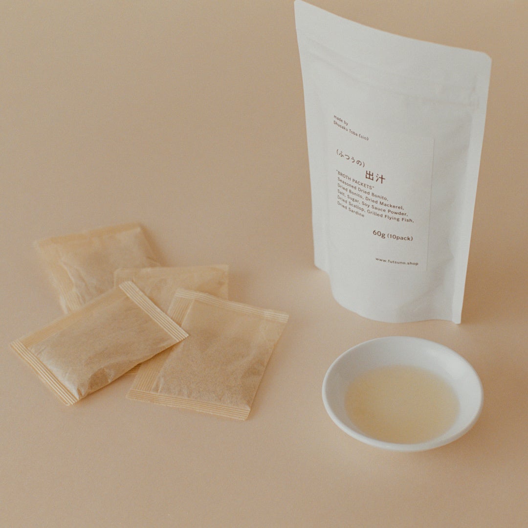 食卓に欠かせない存在の出汁。一方で手間がかかり、毎日手作りするのは本当に大変。毎日つかえる出汁を目指し、課したのは分かりやすさや、派手さ、強さに逃げないということ。縁の下の力持ちに徹するということ。万能性を高めるために6つの国産素材(かつお荒節、かつお枯節、さば節、ホタテ、焼きあご、煮干し)を使用しながらも、とにかく突出させないことにこだわり、配合の微調整を繰り返しました。分かりやすさ、強さがないからこそ、合わせるだけでなぜかととのう出汁ができました。汁物、煮物、おひたし、だし巻き玉子と、幅広くお使いいただけます。