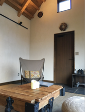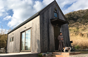 「20年前に訪れた時、県道から海沿いに曲がった瞬間、目の前に広がった景色に一目惚れをしました。いつか南房総に移住する夢を温めながら、私たちが大好きなこの景色を、自分らしく旅をする人たちと共有できればと考え、宿泊施設を始めることにしました。小屋を建てるにあたりこだわったことは、美しい景観を邪魔しない外観。木の外壁のクラシックな佇まいに仕上げました。部屋は必要最小限のものだけを置き、シンプルにしています」と語ってくれた。