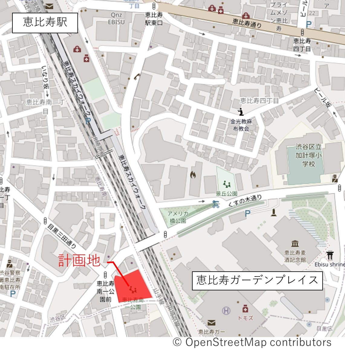 事業内容 :恵比寿南一公園の改修(設計・施工)及び公募対象公園施設の整備・運営