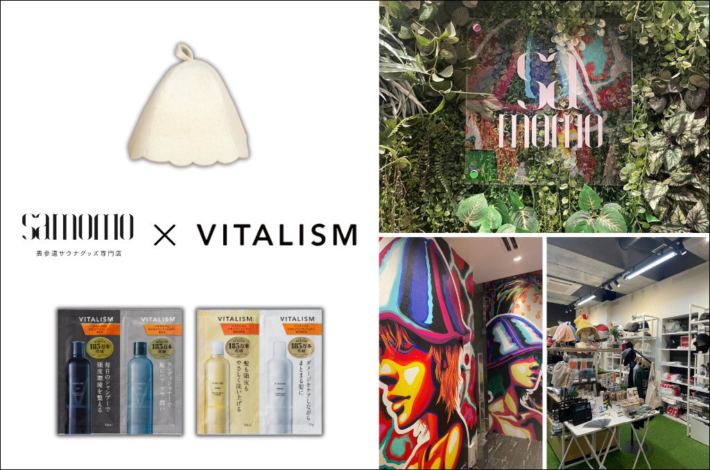 「いい風呂の日」記念!日本初のサウナグッズ専門店「samomo」とトータルケアブランドVITALISMのコラボが決定!サウナハットご購入でシャンプー&コンディショナーのトライアルパウチをプレゼント!