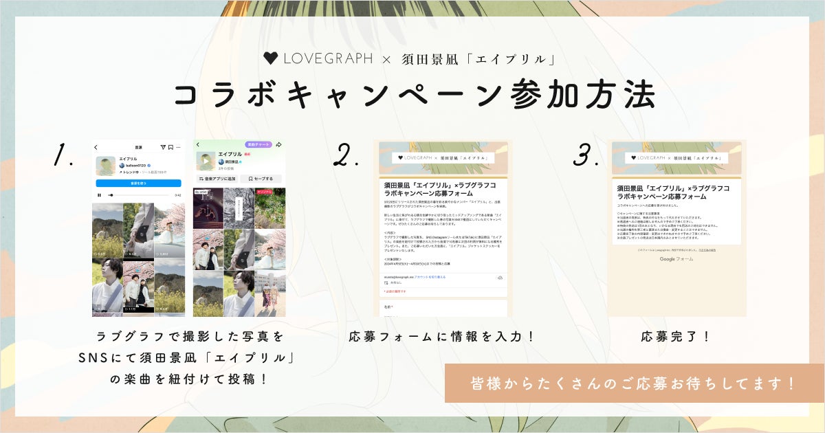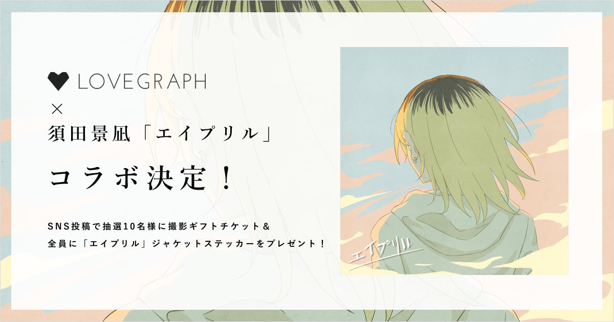 3月29日にリリースされた須田景凪の春を彩る爽やかなナンバー「エイプリル」と、出張撮影のラブグラフがコラボキャンペーンを実施。