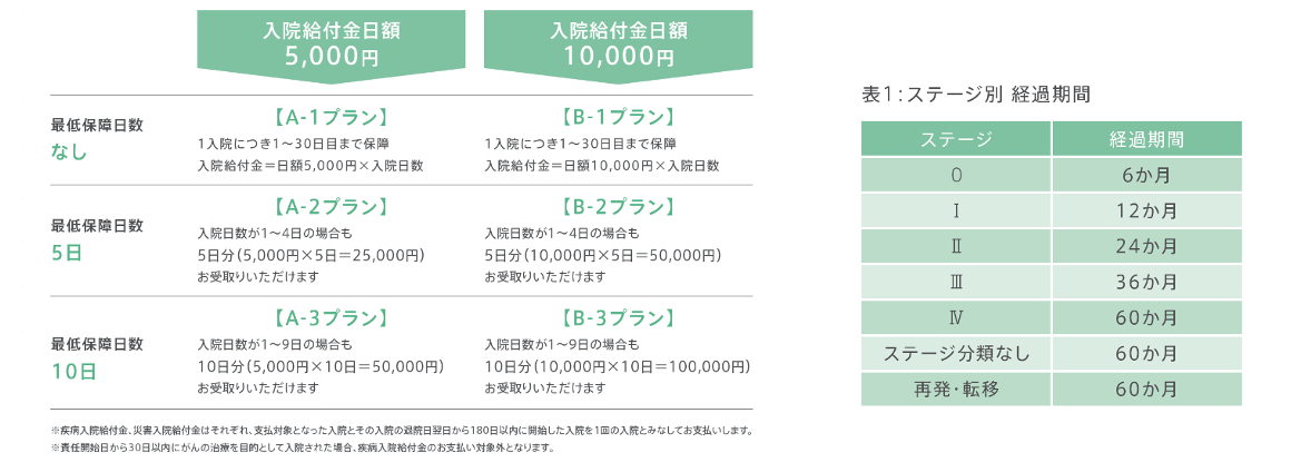 ・罹患したがん*1の診断確定から所定の期間(表1:ステージ別 経過期間を参照)が経過している(*1:がんには悪性新生物の他、上皮内新生物および子宮頸部異形成を含み、いずれもステージ0とみなします。)