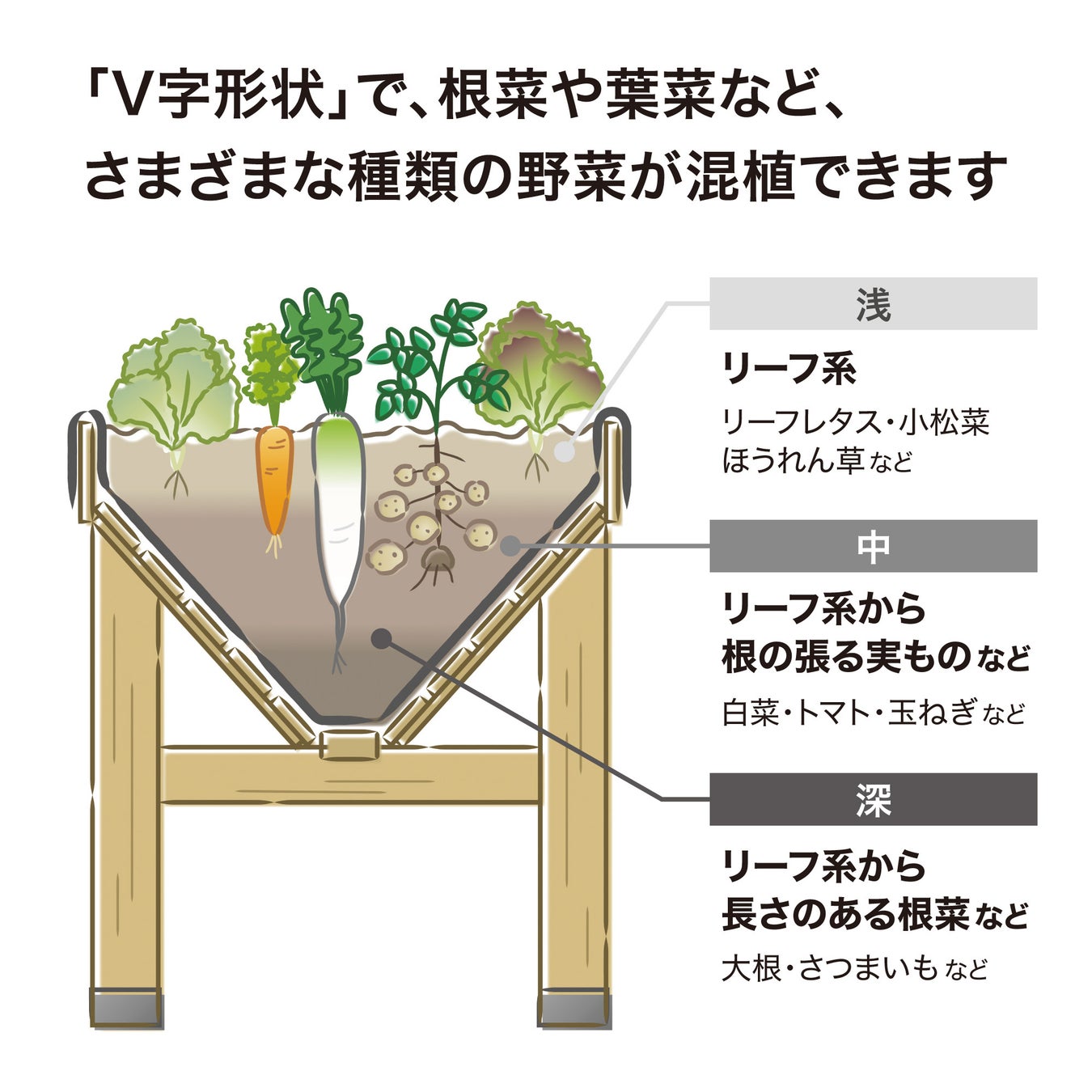 1.VegTrugプランターの人間工学を取り入れたV字設計の形状
