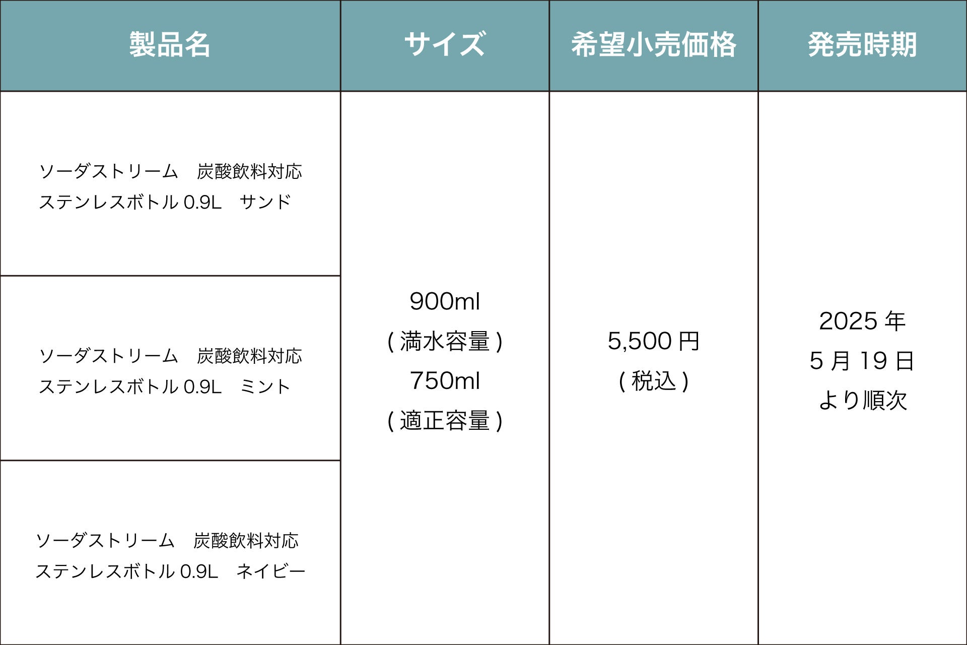 世界No.1(*1)の炭酸水ブランドであるソーダストリーム株式会社(代表: David Katz(デイビッド・カッツ)、所在地:東京都港区)は、ソーダストリームの炭酸水メーカーに直接取り付けて炭酸を注入することができる(*2)炭酸飲料対応の保冷・保温ステンレスボトルを2025年5月19日(月)よりソーダストリームブランドサイト、各販売店にて順次発売いたします。