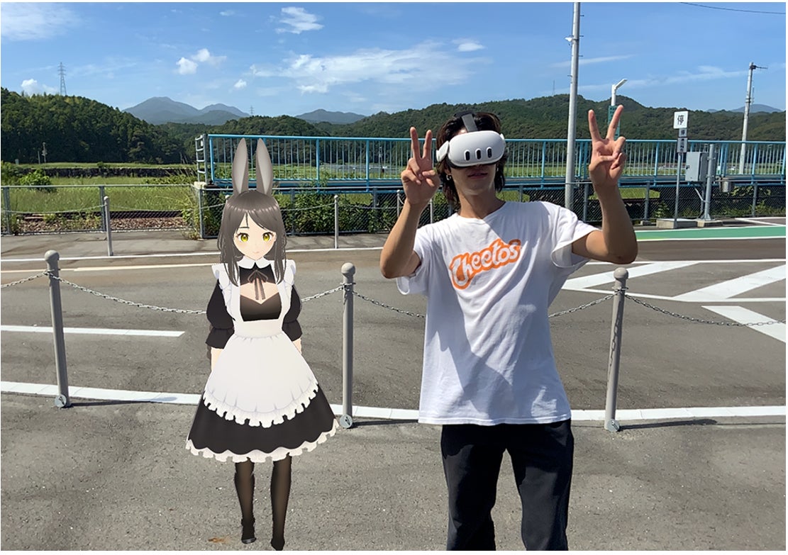 一見何もない空間だが、ゴーグルを着用しているとVTuberが目の前に現れて交流が出来る