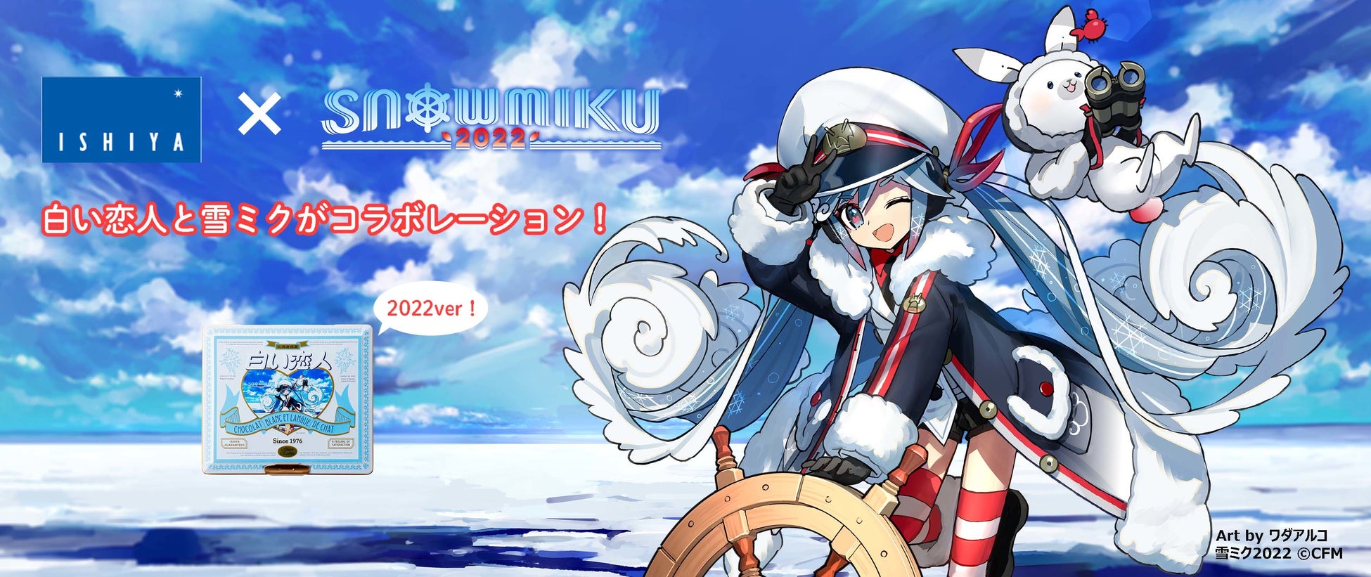 石屋製菓株式会社、並びに石屋商事株式会社(本社:北海道札幌市西区 代表取締役社長:石水 創)は、クリプトン・フューチャー・メディア株式会社が運営する、北海道を応援するキャラクター「雪ミク」とコラボレーションし、『白い恋人36枚入(SNOW MIKU 2022Ver.)コラボ缶』を2022年2月5日(土)より期間限定で、白い恋人パーク内「ショップ・ピカデリー」と「ISHIYA札幌大通本店」の2店舗の他、2月7日(月)よりISHIYAオンラインショップAnnexにて販売いたします。