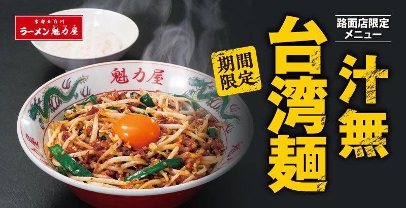 京都北白川ラーメン魁力屋をチェーン展開する株式会社魁力屋(http://www.kairikiya.co.jp本社:京都市中京区、代表取締役社長:藤田 宗、以下魁力屋)は、2023年2月22日(水)より、路面店にて「汁無台湾麺」を期間限定で販売開始いたします。