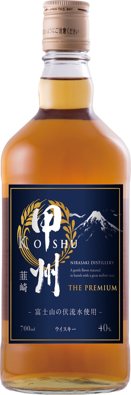 甲州韮崎ザ・プレミアムは富士山の清らかな伏流水を使用し、きめ細かく滑らかな舌触りに仕上げたブレンデッドウイスキーです。澄んだ味わいと、バニラや蜂蜜にピートが香る余韻をお楽しみいただけます。