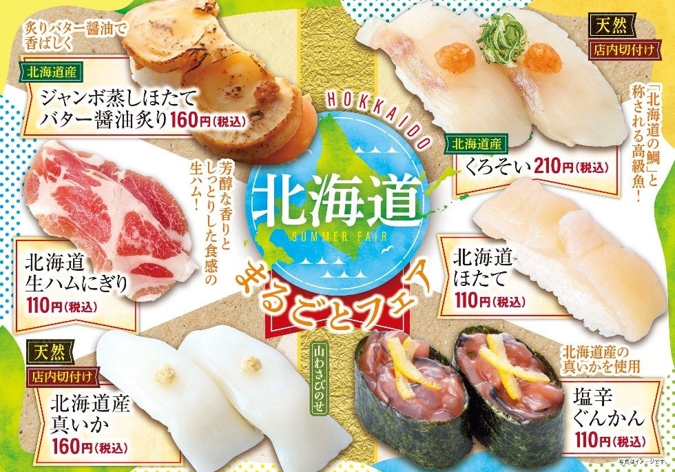 寿司レストランチェーンを展開する元気寿司株式会社(本社:栃木県宇都宮市 代表取締役社長 法師人尚史)は、2022年6月28日(火)より、「ジャンボ蒸しほたてバター醤油炙り」や、昨年大好評だった「北海道産くろそい」をはじめとする計6品の北海道産の選りすぐりネタを集めた「北海道まるごとフェア」を期間限定で開催いたします。