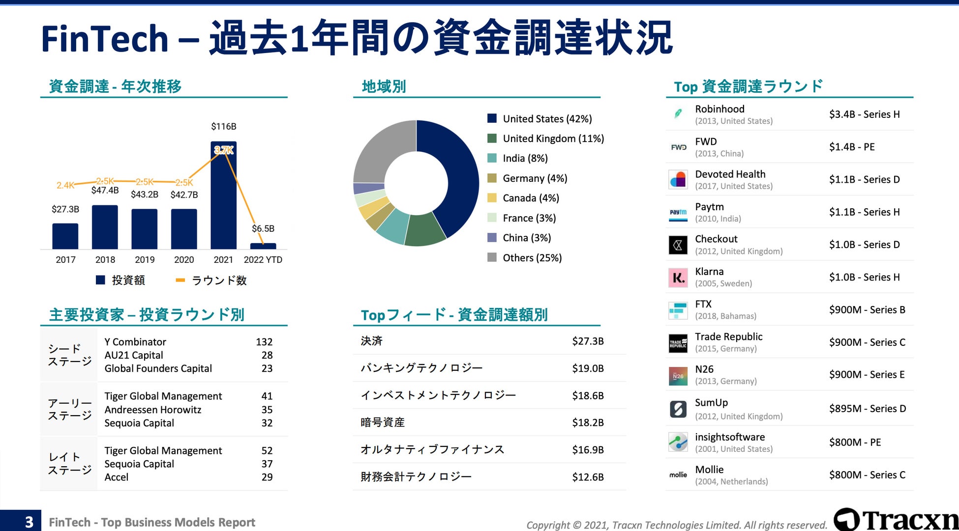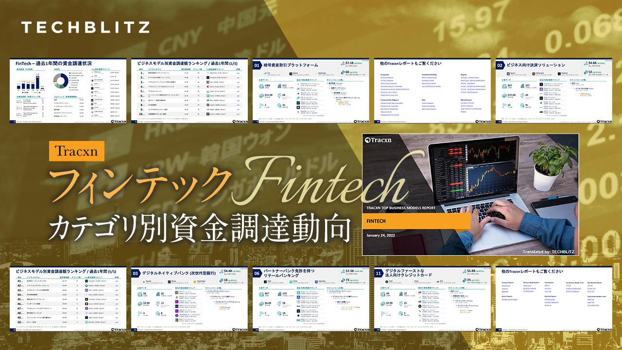 Tracxnとパートナーシップを結ぶTECHBLITZは今回、「フィンテック カテゴリ別資金調達動向」を日本語版でリリースいたしました。
