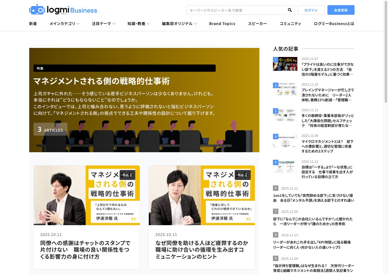 ログミーBusiness、上司との関係構築に悩む若手向け特集「マネジメントされる側の戦略的仕事術」を公開