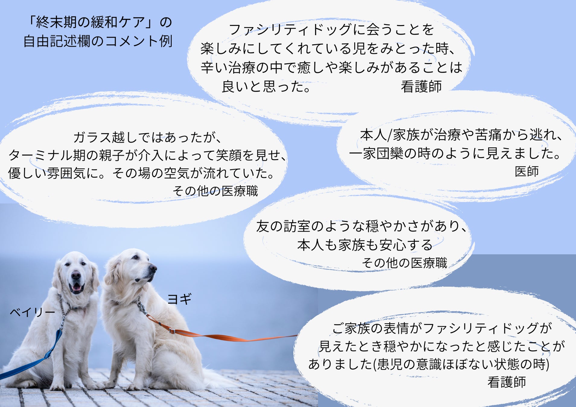 こども病院でファシリティドッグが入院患者の「終末期の緩和ケア」や、痛さ恐怖を伴う「治療や処置への協力」を向上させることを、体系的に初めて示すことができました。
