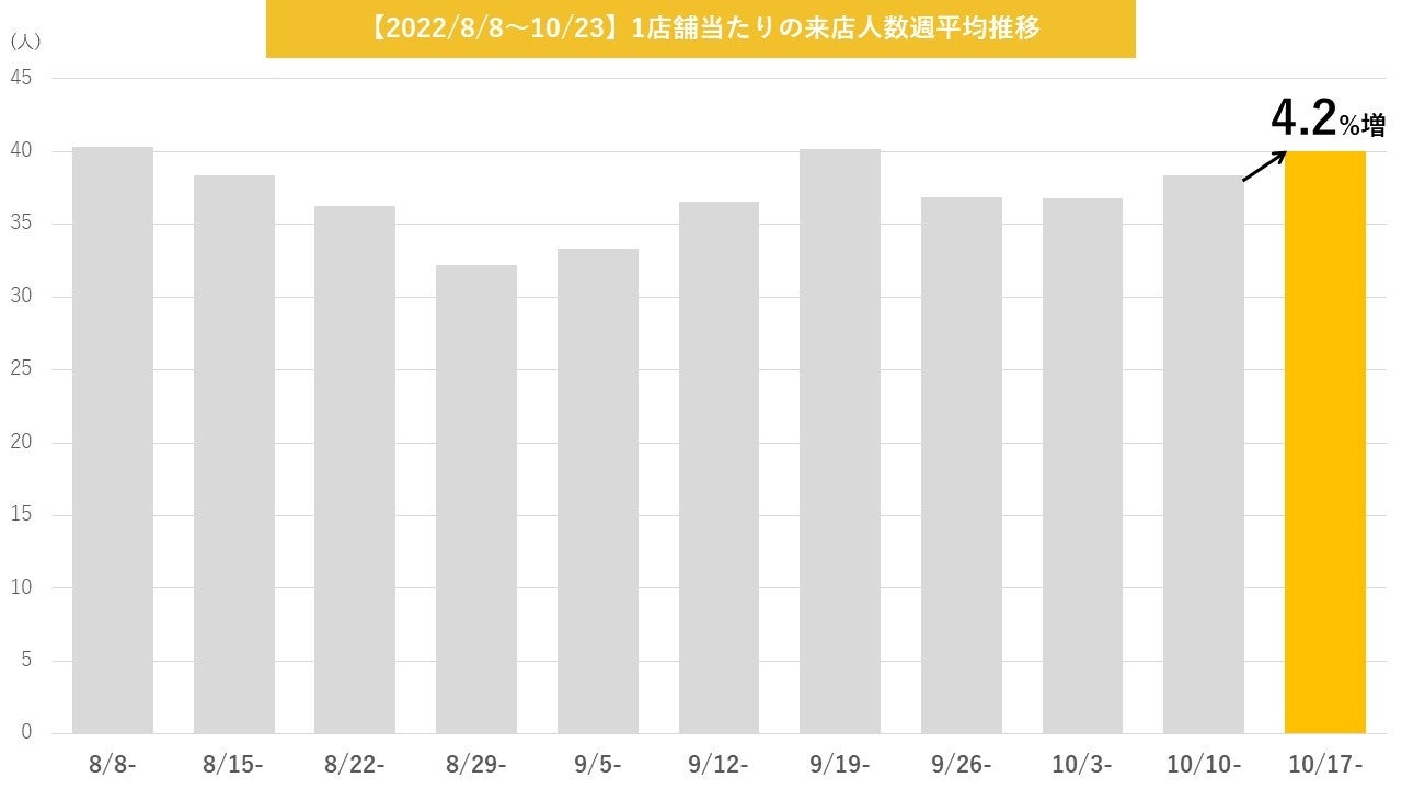 また、予約作成日集計のインバウンド客予約件数(9/22~10/23)が19088件なのに対し、予約来店日集計のインバウンド客予約件数(同)は6379件にとどまっており、まだ来店していないインバウンド客が多く存在することを示しています。来月以降さらにインバウンド客の来店が増加していくことが見込まれます。
