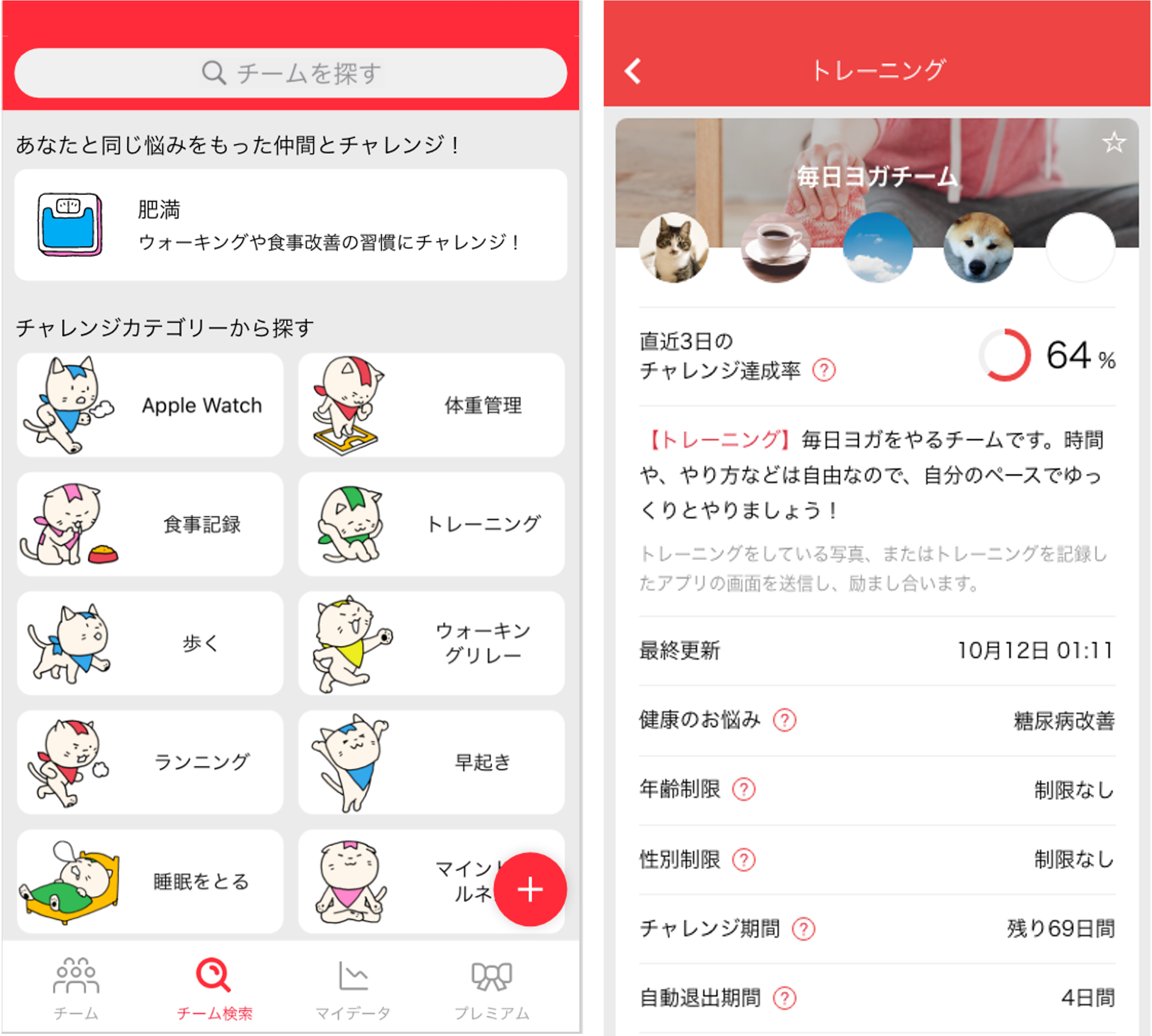 同じ健康の悩みを持つ人同士でチームを組んで、食事改善や運動を継続!習慣化アプリみんチャレ、「健康のお悩み別チーム」機能を提供開始