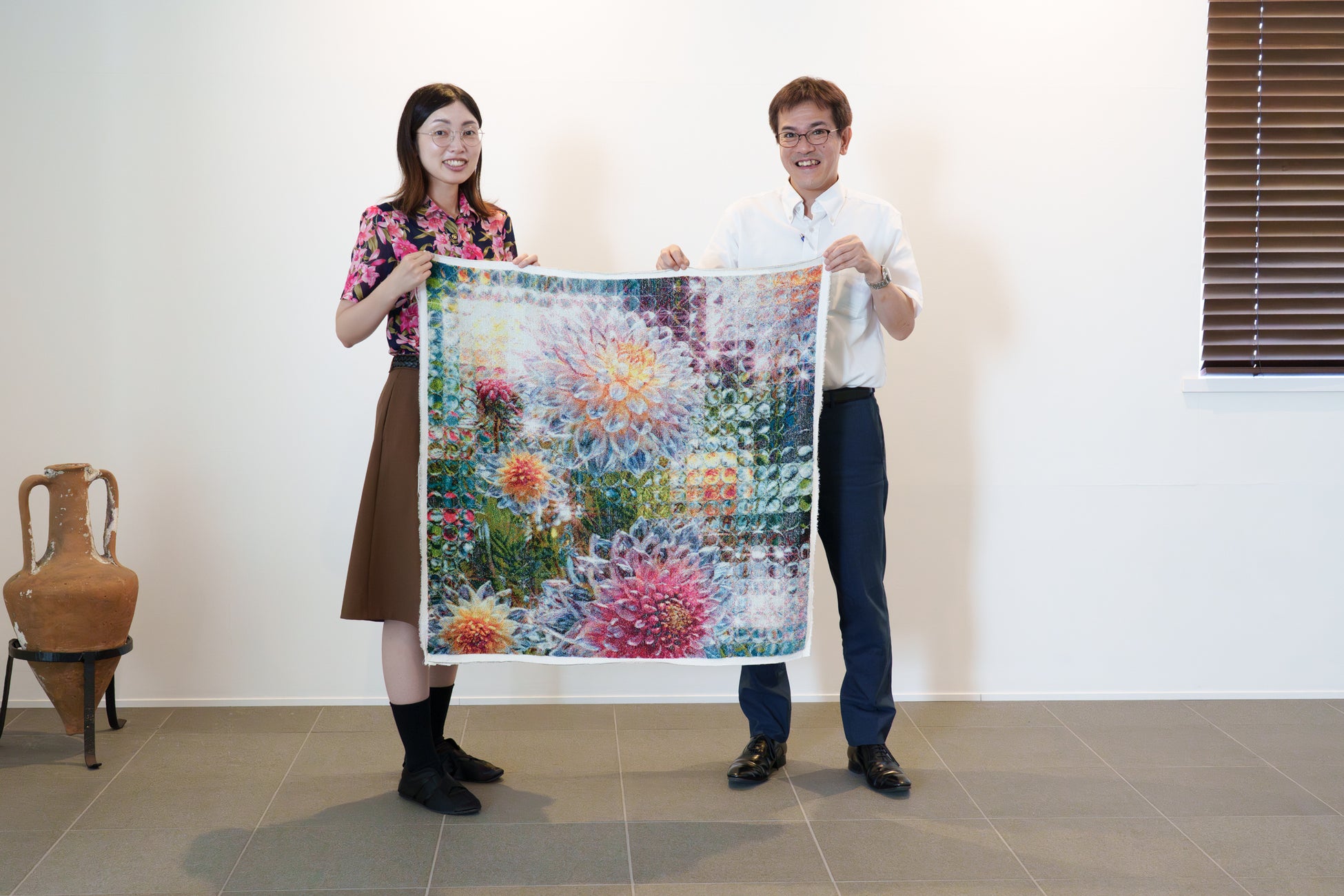 EXPO 2025 大阪・関西万博のスイスパビリオンで、同国を代表するグローバル企業「ネスレ」の未来社会に向けた活動を表現する美しいデジタル映像展示を制作した気鋭の“キラキラ”デジタルアーティスト「江原彩子(Saeko Ehara)」氏(東京都)と世界初のフルカラージャカードタオル「五彩織り」