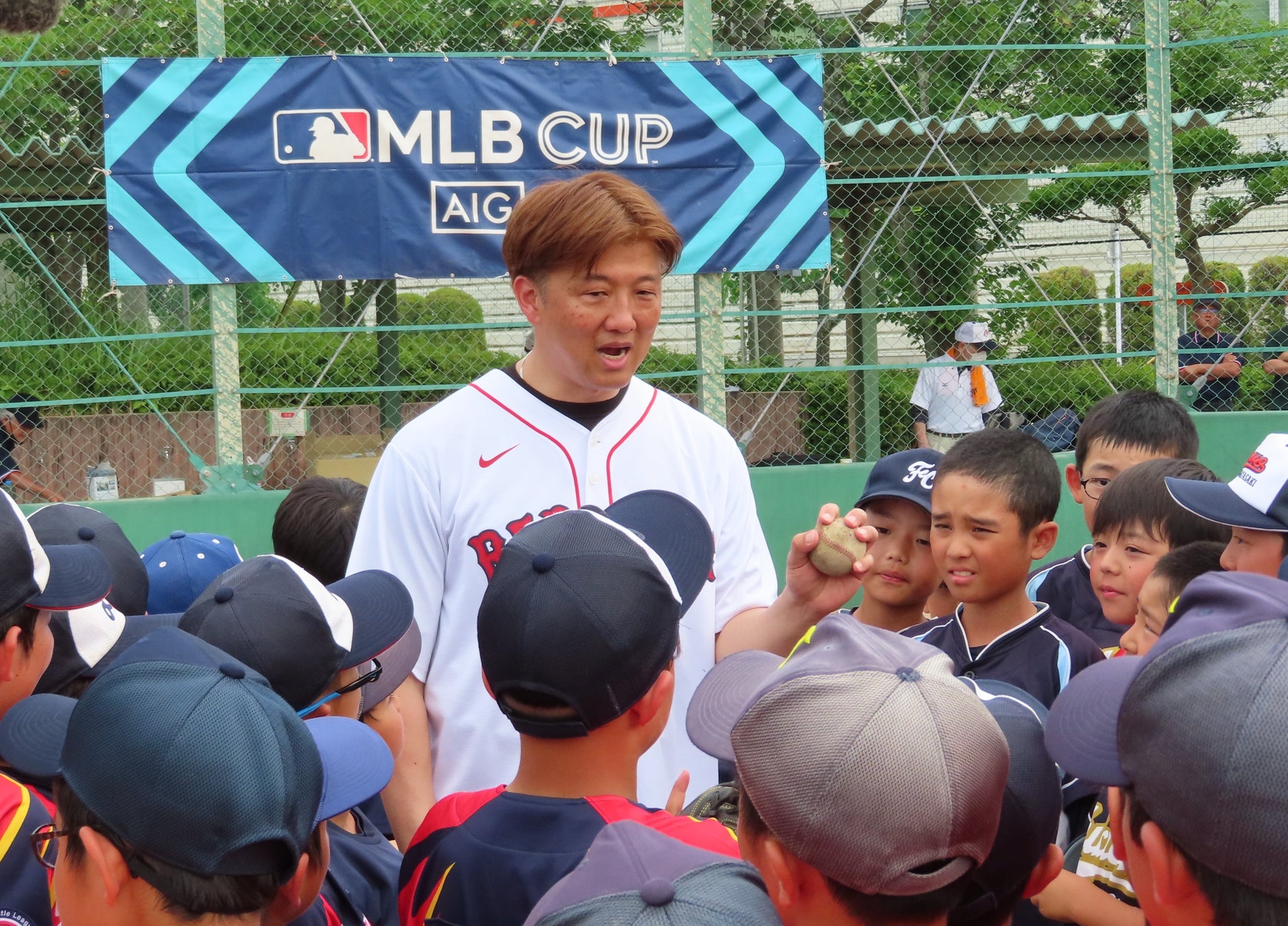 また、指導した元MLBプレーヤーからは、「一番大切なのは楽しむこと。子どもたちには、野球だけでなくいろいろなスポーツを行ってほしい。そうすることで選択肢を増やしていくことも重要なことだと思う。」「参加した子どもたちは、みんな金の卵。毎日の練習の積み重ねでうまくなるので頑張ってほしい。」など、参加した野球少年・少女の将来へ向けた応援メッセージをいただきました。