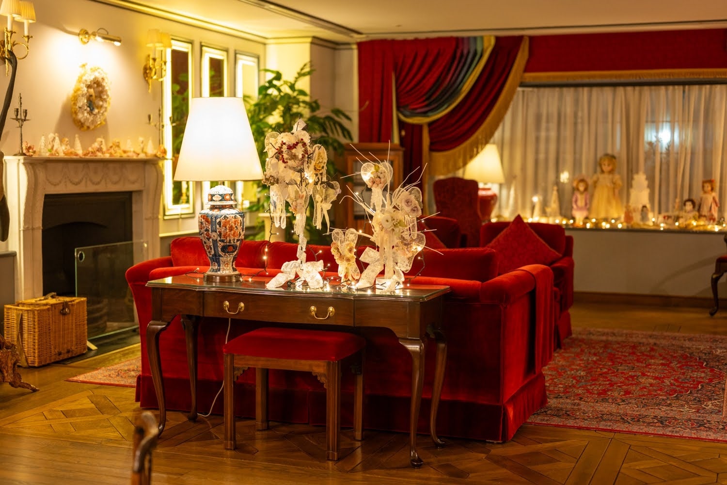 マントルピース、出窓、テーブルと、ロビーの全てがまるでギャラリーのように作品が置かれています。全ての装飾は一つひとつ手作りで丁寧に仕上げられており、想いから溢れ出る温もりに包まれています。