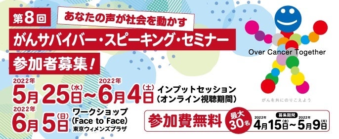 認定NPO法人キャンサーネットジャパン(東京都 理事長 岩瀬 哲)は、このたび、Over Cancer Together〜がんを共にのりこえよう〜 第8回がんサバイバー・スピーキング・セミナーを開催します。