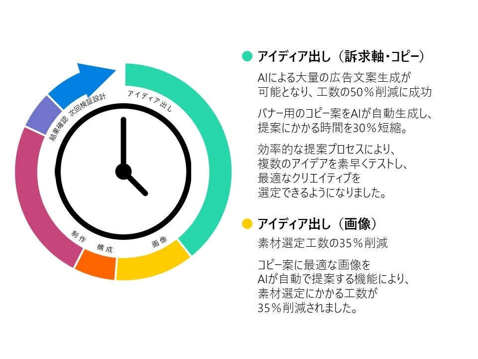 とくに広告クリエイティブチームの業務効率化・人材の早期戦力化が可能になり、より一層、高速かつ多様なクリエイティブ提案をすべてのクライアント企業に対して提供できるよう支援体制が強化されました。