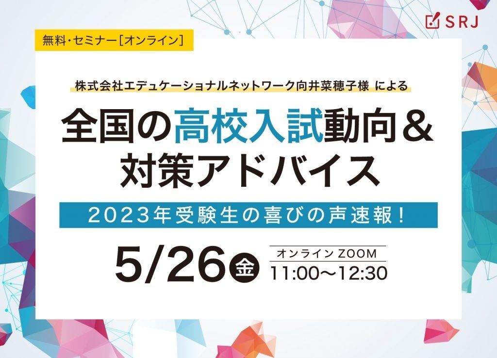 株式会社エデュケーショナルネットワークの向井 菜穂子氏より、2023年春に実施された全国の高校入試の分析や動向についてお伝えいたします。また、SRJ会員塾の生徒の皆さまの喜びのお声とともに最新の合格体験記をご報告いたします。