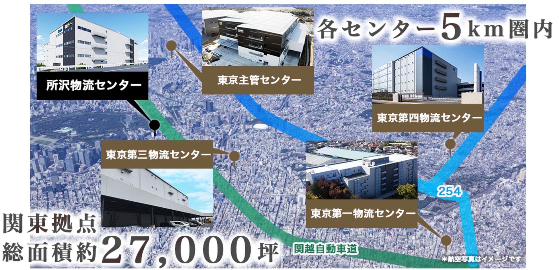 2024年12月、埼玉県所沢市に約8,000坪の新物流センター「所沢物流センター」が誕生することにより、関東エリアでの保有倉庫は5拠点、総面積が約27,000坪へと拡大します。