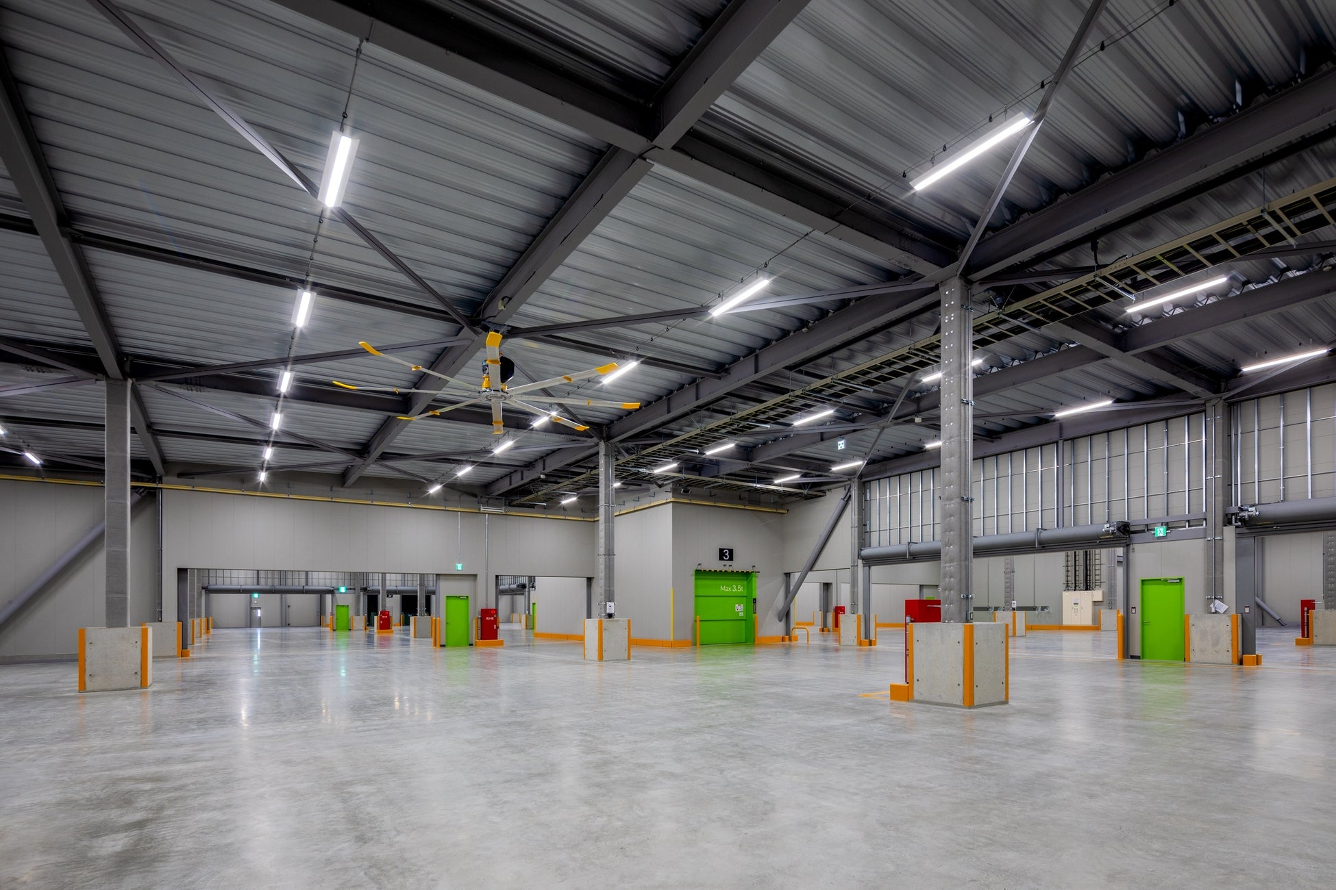 施設内には厨房付きのカフェテリアやシャワー室を設置しており、庫内には大型シーリングファンを設置するなど、働く環境の快適性を向上します。
