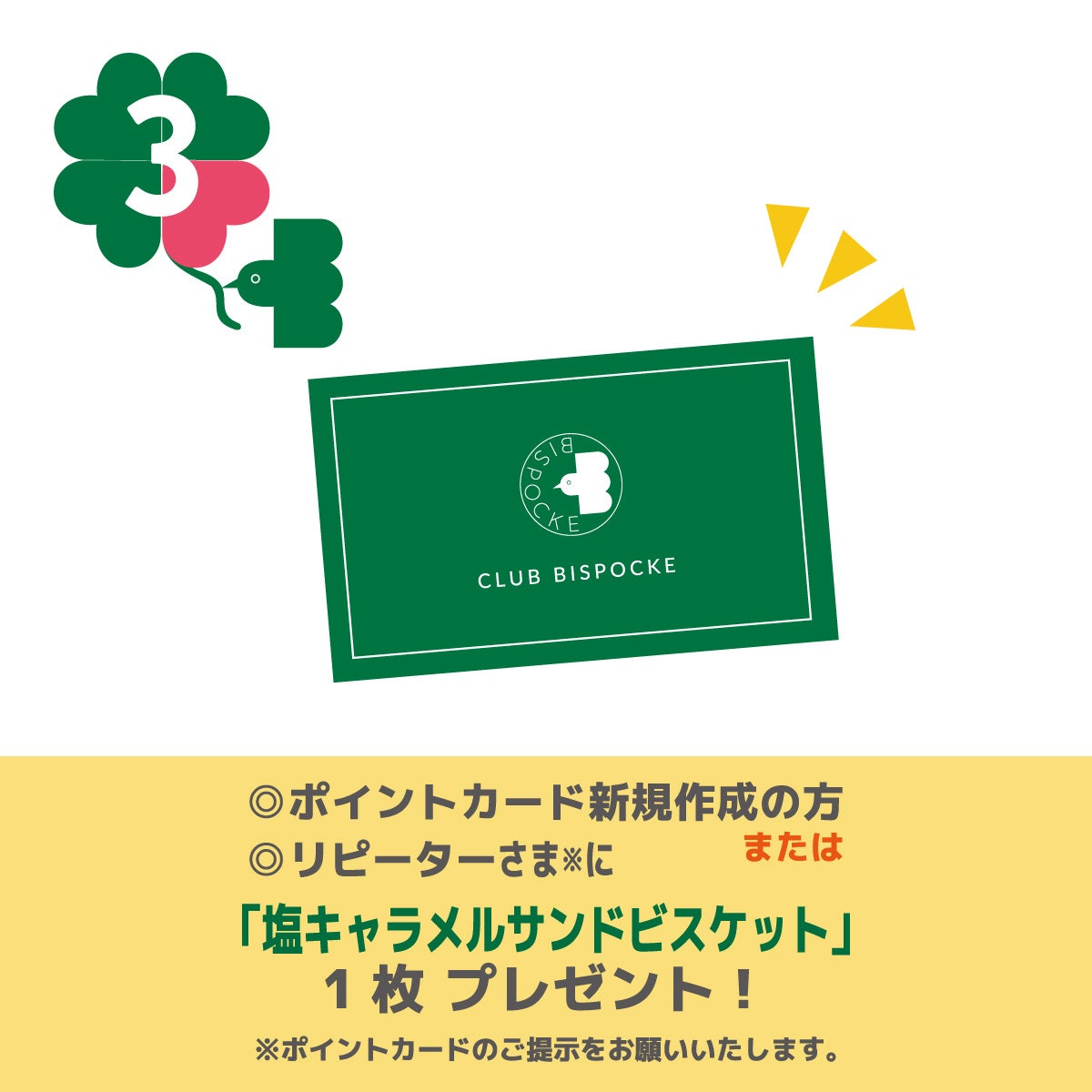 「塩キャラメルサンドビスケット」1枚プレゼント♪