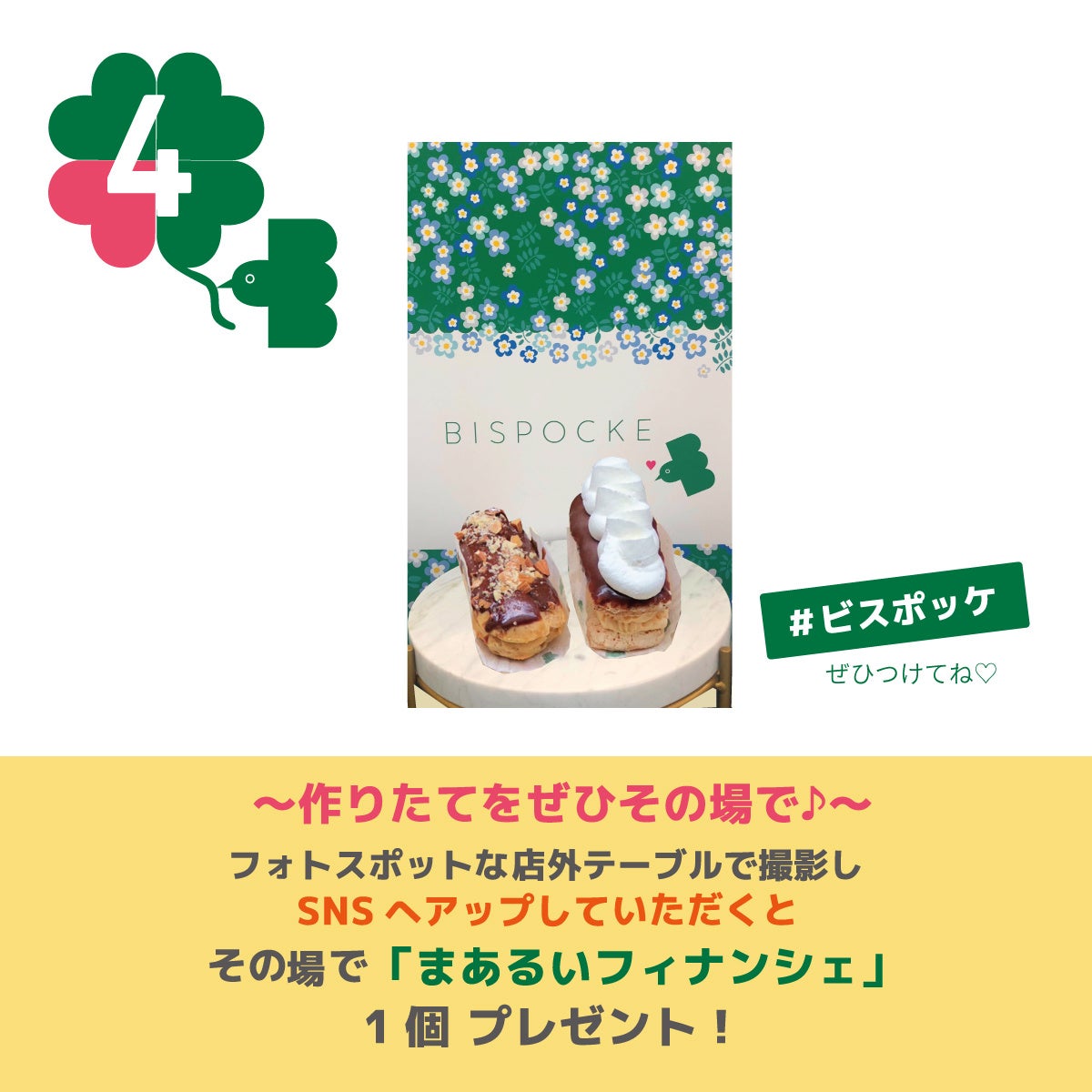 フォトスポットな店外テーブルでご購入いただいた商品を撮影し、SNSへアップしていただくとその場で「まあるいフィナンシェ」をおひとつプレゼント!