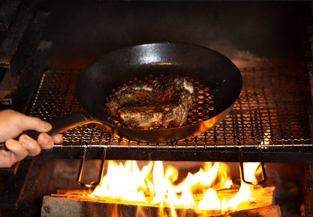 ファウンダリーでは、特製の「薪窯」を使用しています。新開発のファイアウッドパンを薪窯に入れて焼きあげることで、瞬間蒸発ホーローでお肉の旨みを凝縮しながら、薪窯の香ばしい薫りと芳醇な風味をまとわせ、素材そのものの魅力を最大限に引き出すことができます。