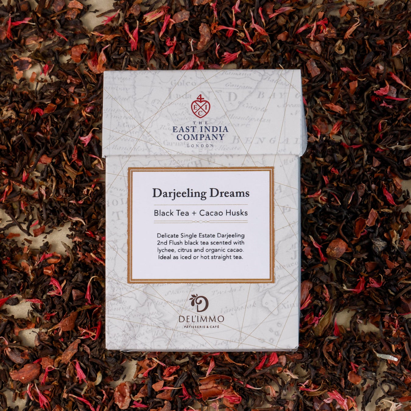 繊細なシングル・エステート・ダージリンのセカンドフラッシュ紅茶と有機カカオハスクをブレンドし、