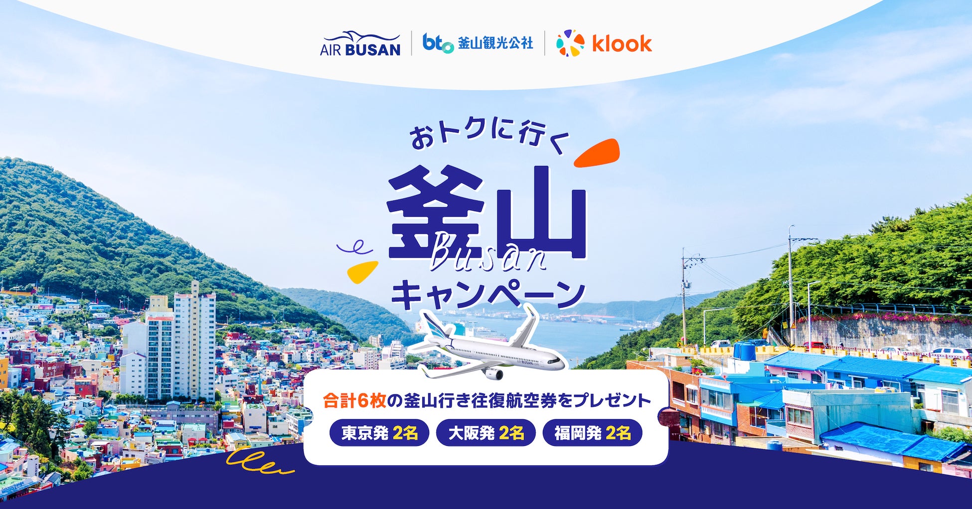 韓国好きの最旬スポット、釜山に行くならエアプサン!Klook x エアプサン x 釜山観光公社が連携し、釜山往復航空券プレゼントキャンペーン開催