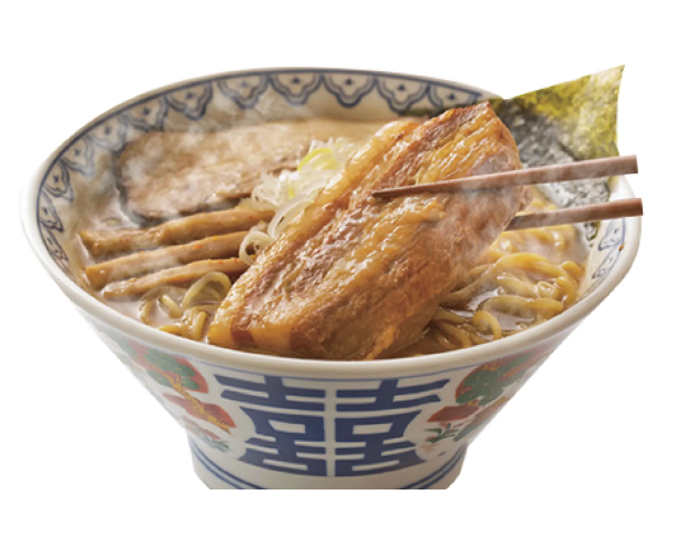 大きな角煮が目を引くばんからラーメンの代表とも言えるシグネチャーメニューは人気NO1商品。おいしさを引き出すために角煮ばんからに合った中細麺を使用しています。角煮をのせて完成するばんから基本の味は角煮の絶妙な甘味もポイント。熟成された甘味たっぷりの背脂スープと、こってりした旨味がファンを虜に。