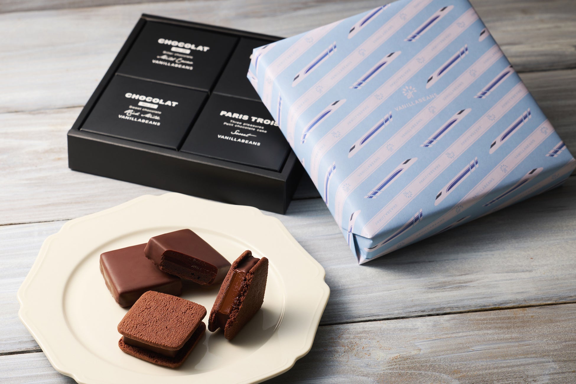 フェアトレードチョコレートを使用した、VANILLABEANSの看板商品「ショーコラ」と、3層のプチショコラケーキ「パリトロ」がセットになった人気アソートを新横浜店限定パッケージでご用意いたします。ご自宅用はもちろん、横浜土産にもおすすめの一品です。