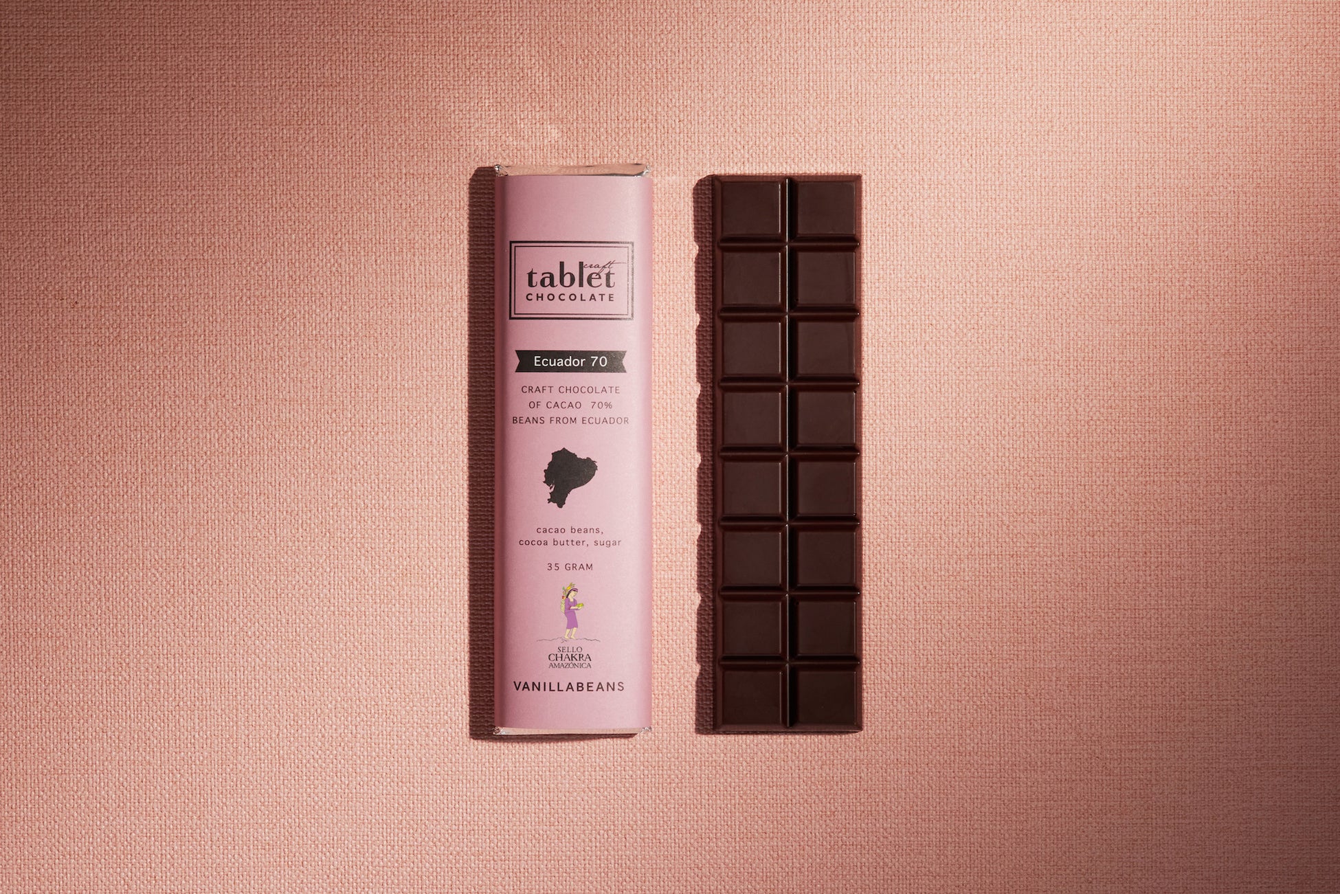 おすすめのフレーバーは「エクアドル70」、VANILLABEANSがカカオ植樹&栽培支援活動を実施しているエクアドル共和国の先住民の伝統的な農業方法で栽培された、世界で約2%しか獲れない希少な「アリバカカオ種」を使った1枚。酸味が少なく、コーヒーのようなまろやかな苦味を感じさせるフレーバーです。手作業で選別された最もクオリティの高いカカオ豆を取り寄せています。