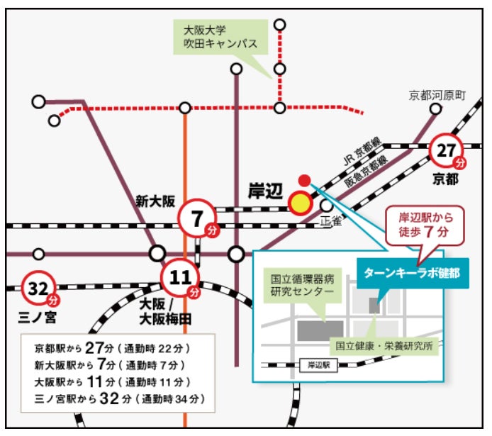 *3. 大阪府摂津市と吹田市にまたがる健都は、国立循環器病研究センターと国立健康・栄養研究所(年内に東京新宿から移転予定)を中心とした、「国際級」の医療クラスターの実現を目指し取り組みが進められているエリアです。健康・医療関連企業等が集積し、産学官民の共創により生まれるオープンイノベーションとまちぐるみの健康づくりの融合により、健康医療分野の新たな研究開発拠点として発展が期待されています。
