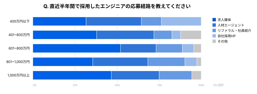 2. 高収入エンジニアやマネージャークラスの採用においては「リファラル・社員紹介」経由が比較的多い