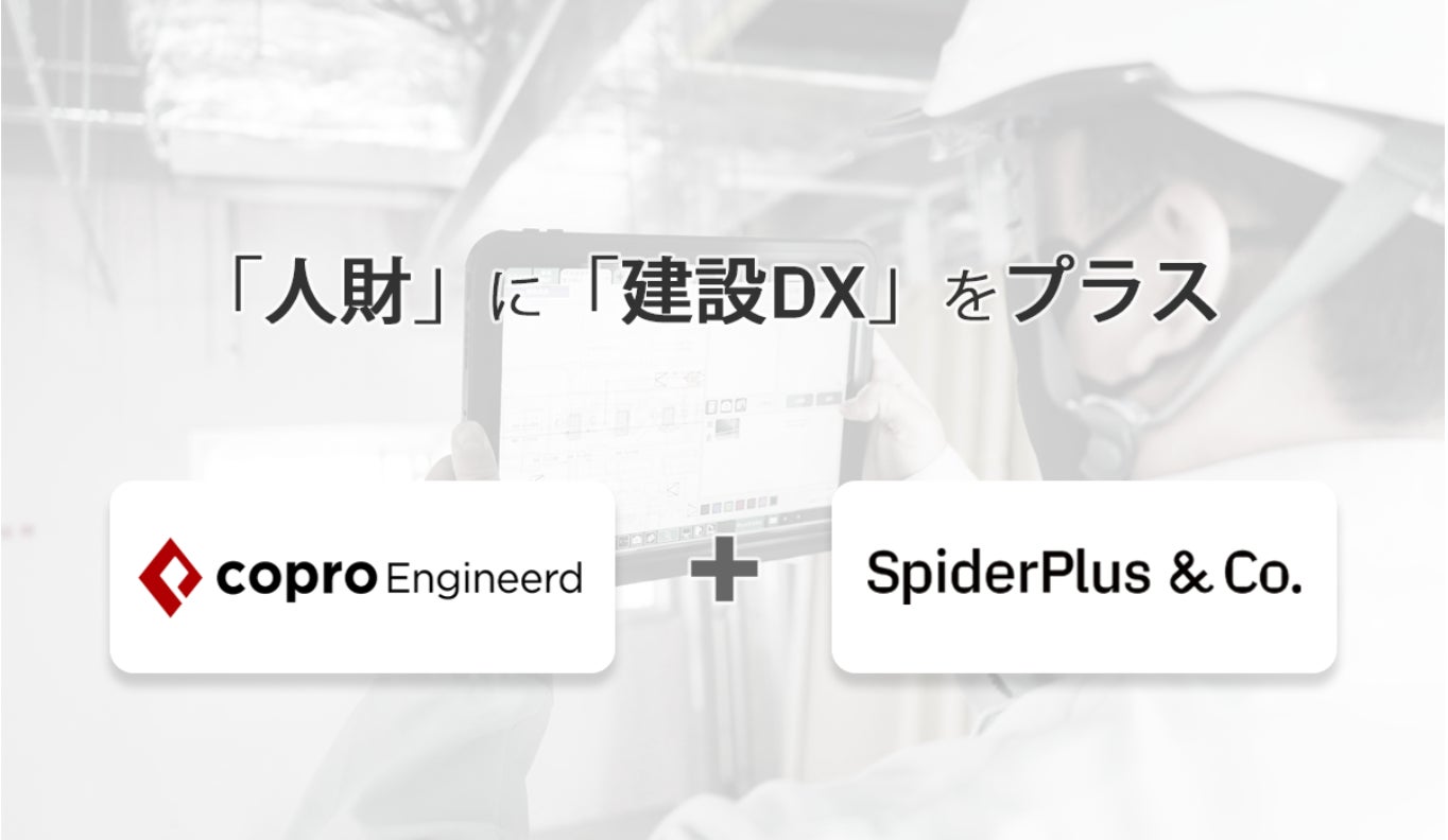スパイダープラス株式会社(本社:東京都港区、代表取締役社長:伊藤謙自、東証グロース、以下「スパイダープラス」)は、株式会社コプロ・ホールディングス(本社:愛知県名古屋市、代表取締役社長:清川甲介、東証プライム・名証プレミア)の連結子会社である株式会社コプロ・エンジニアード(以下「コプロ」)と建設業界におけるDXの推進及び強化を目的に、本日付けで業務提携(以下「本提携」)に関する契約を締結しましたのでお知らせいたします。