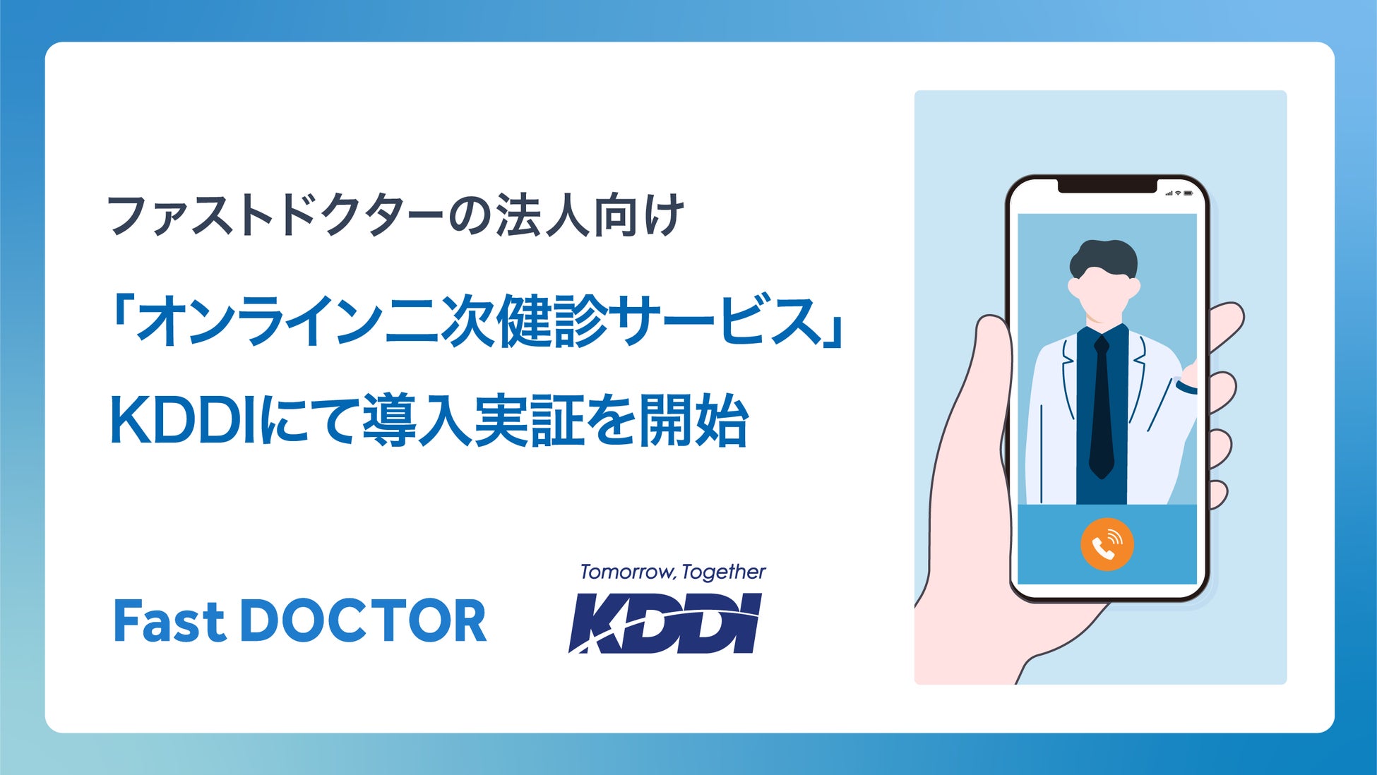 ファストドクター株式会社(本社:東京都渋谷区、代表取締役:菊池 亮(医師)、水野 敬志、以下、ファストドクター)は、2024年1月から、KDDI株式会社(以下、KDDI)にて法人向け「オンライン二次健診サービス」の実証を開始しました。