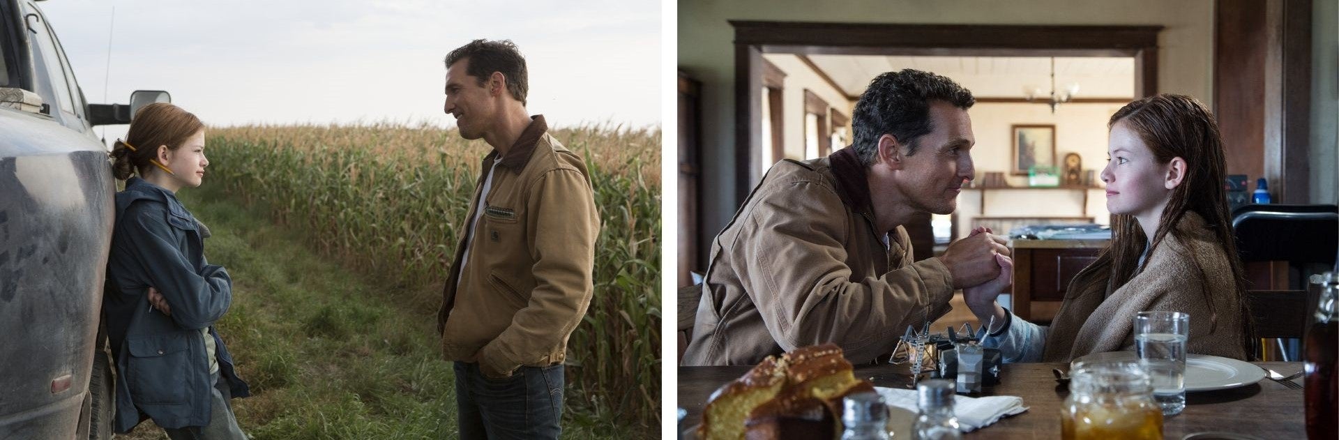 地球規模の異常気象と飢饉によって人類滅亡の危機が迫る近未来が舞台。幼い娘を持つ、元宇宙飛行士のエンジニアで現在はトウモロコシ農場を営んでいるクーパー(マシュー・マコノヒー)は、NASAの要請に応じてラザロ計画に参加することになります。その計画とは、土星付近に突然発生したワームホールを通り抜け、新しい惑星へと人類を移住させるという、命を懸けた前代未聞の極限ミッション。家族と人類の未来を守るため、ミッションに参加することを選んだクーパーは、娘のマーフとの別れを惜しみながらも、旅立ちの際に自分の腕時計を手渡します。