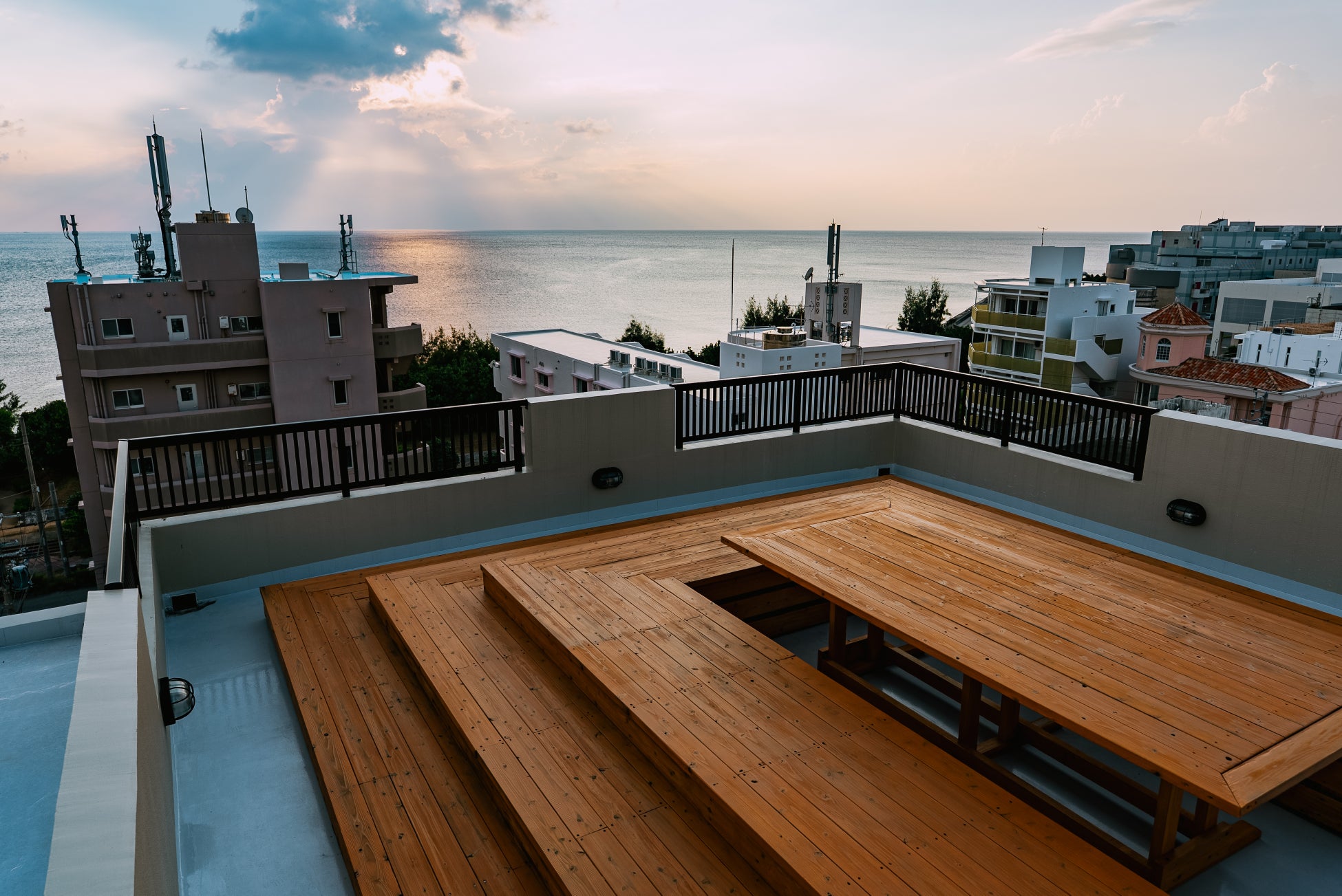 観光地の喧騒から少し離れたこの場所では、客室からはもちろん、ルーフトップに上がれば青く澄んだ海と爽やかな風に包まれ、穏やかな時間が流れます。週末になれば、アメリカンビレッジの花火を目の前で見れる特等席。