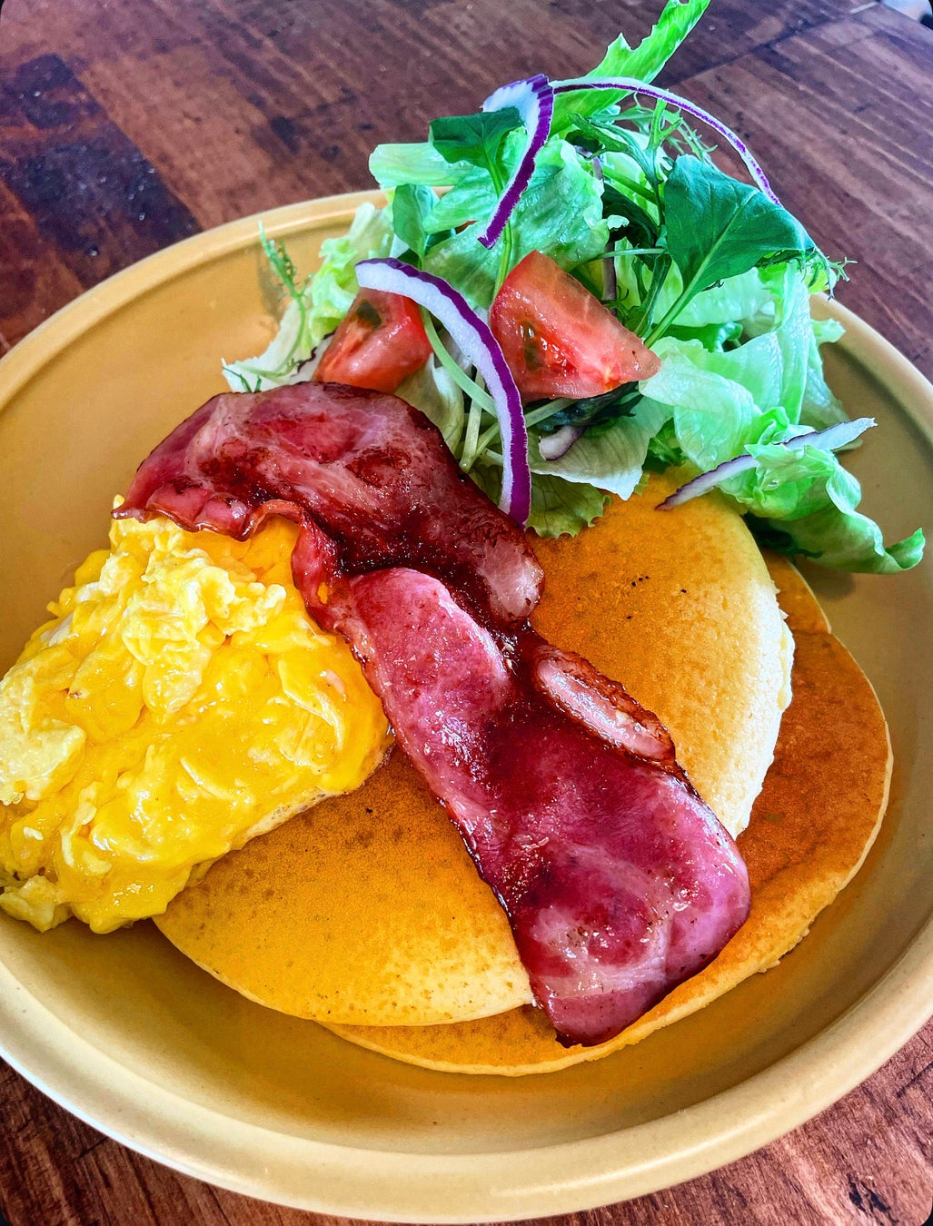 沖縄・北谷町港の海辺に佇む、5室だけのブティックホテル。その1階に、海風を感じながら味わうフレッシュパンケーキとコーヒーの朝のスタイルが始まります。