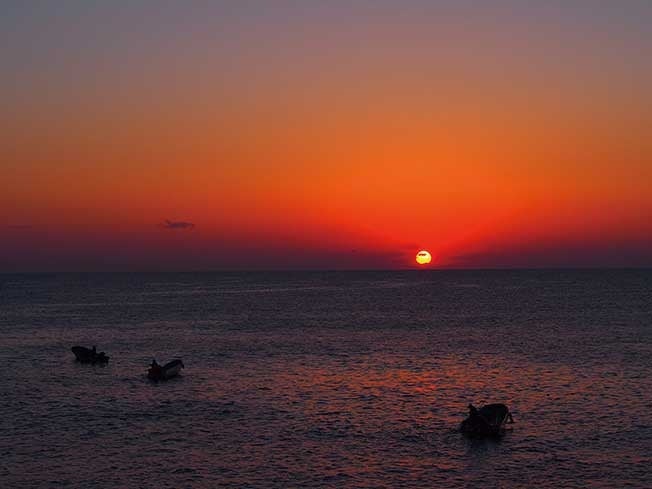解禁日の朝は、夜明けとともに漁師たちが小型船で一斉に海へ出向き、あわび漁が始まります。この光景は地元では一種の祭りのような風物詩として親しまれており、漁師たちは「箱メガネ」(底面が透明な箱状の道具)を海面に浮かべ、肉眼で海底のあわびを探します。採取可能な水深は1〜4メートルほどで、視認したあわびを専用の竿で引っ掛けて、丁寧に採取します。