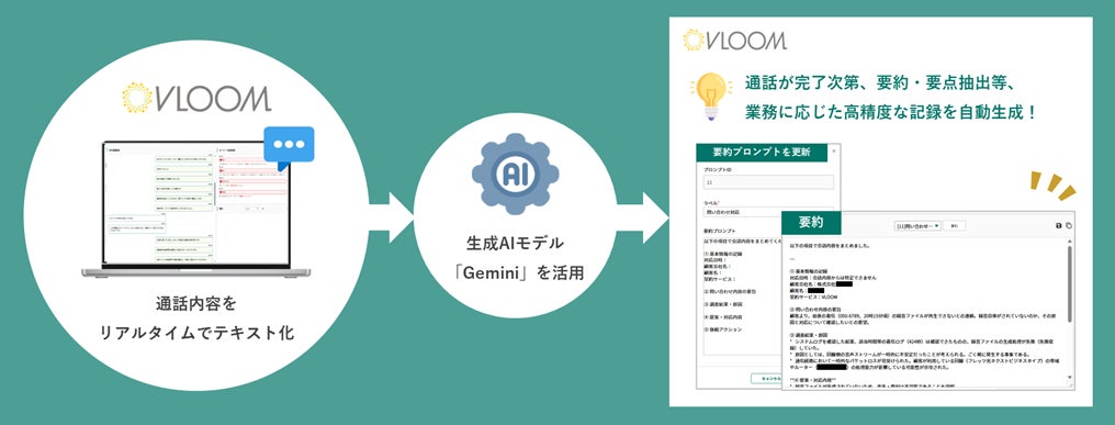 当社が提供する「VLOOM」は、こうした市場動向を先読みし、これまでも継続的に機能開発を進めてまいりましたが、今回、さらなるサービスの付加価値向上と顧客ニーズへの対応力強化を目的として、音声認識エンジンの処理速度向上やGoogleの生成AIモデル「Gemini(ジェミニ)」を活用した要約処理の刷新、ユーザビュー機能の一部改善等のバージョンアップを実施いたしました。