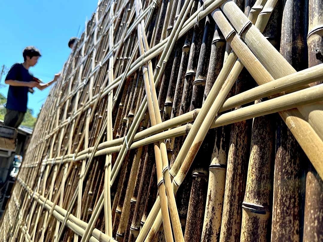 そして今回竹虎が担当させていただいた地方車は、一本一本職人の手で矯め直した虎斑竹をふんだんに使用し美しく地方車を囲んでいます。真っ直ぐな虎竹が並んでいる様は壮観で見ごたえのあるデザインに仕上がっています。