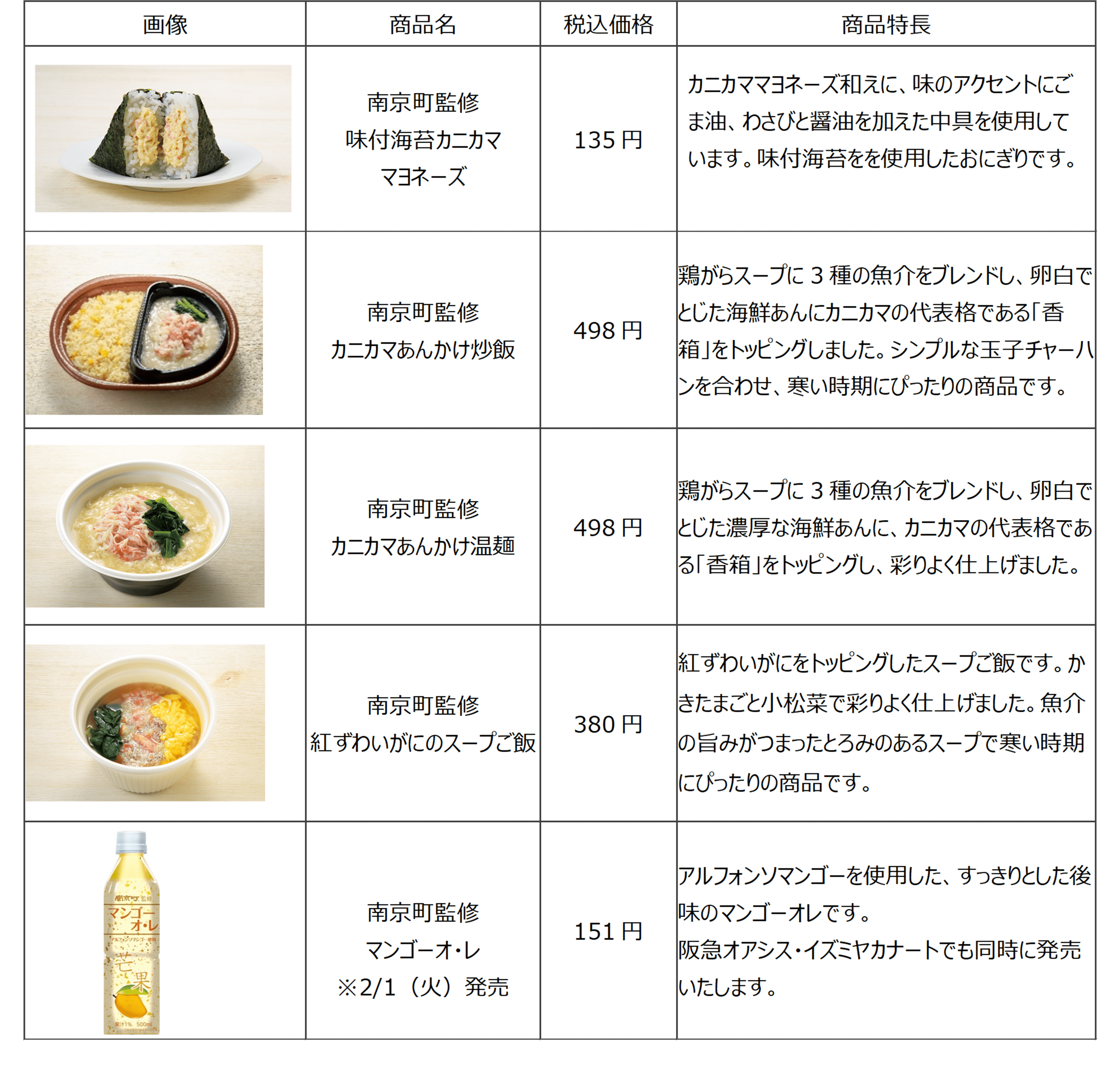 また、春節祭に合わせ、株式会社ローソン(本社:東京都品川区、代表取締役 社長:竹増 貞信 以下ローソン)から、1月25日(火)より近畿2府4県のローソンにて、南京町の有名店シェフ監修のカニカマや紅ずわいがにを使用した食事メニュー等の商品を販売中です。