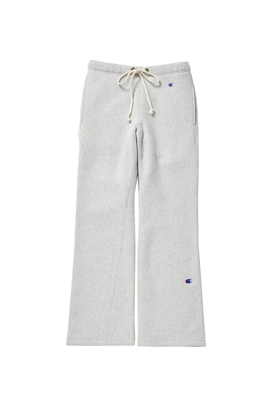 N.HOOLYWOOD とのコラボレーションによる、Champion を代表する製法の「REVERSE WEAVE®」を実験的に再構築し、「NEW WEAVE」と名付けたカプセルコレクション第二弾。着込むほどに独特の風合いや味わいが出る11.5oz(11.5オンス)の裏起毛素材を身体に沿った立体裁断で組み上げたスウェットパンツです。すっきりとしたスリムフレアシルエットで、股下は動きやすく可動域を広げるガゼットリブ仕様です。コレクション名の「NEW WEAVE」と両ブランドのロゴを入れた、コラボレーションを象徴するスペシャルなネームが付きます。