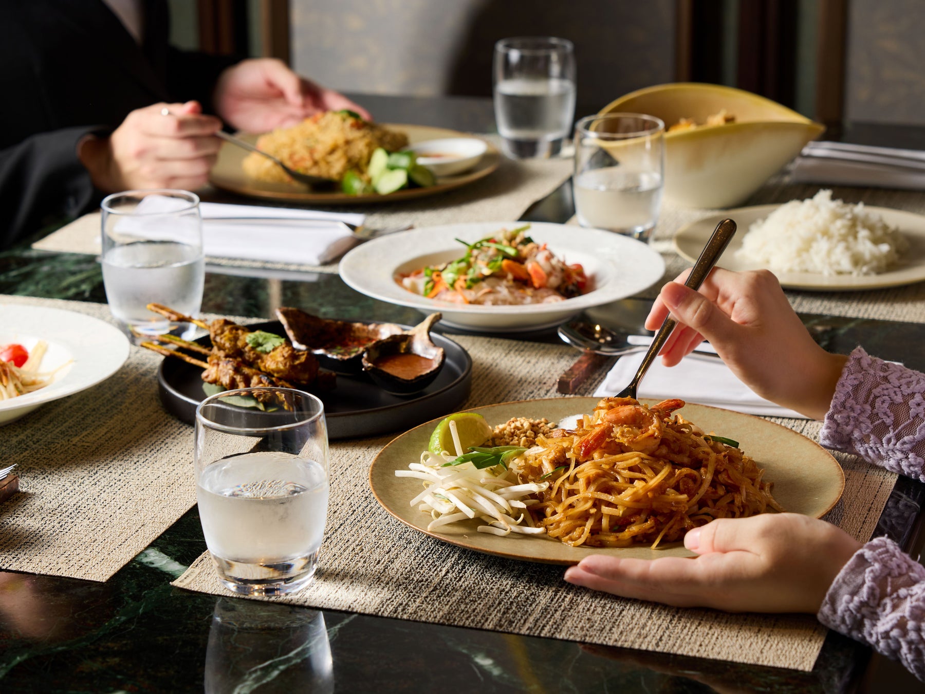 オールデイダイニング「Kati」では、選べるメインのほか、サラダ・前菜・スイーツをビュッフェスタイルで楽しめる、特別なランチコースをご用意しております。芳醇なスパイスと旬の地元食材を駆使した本場タイ料理と、華やかな季節のデザートを、開放的なダイニングスペースで、ご家族やご友人と共にご堪能ください。