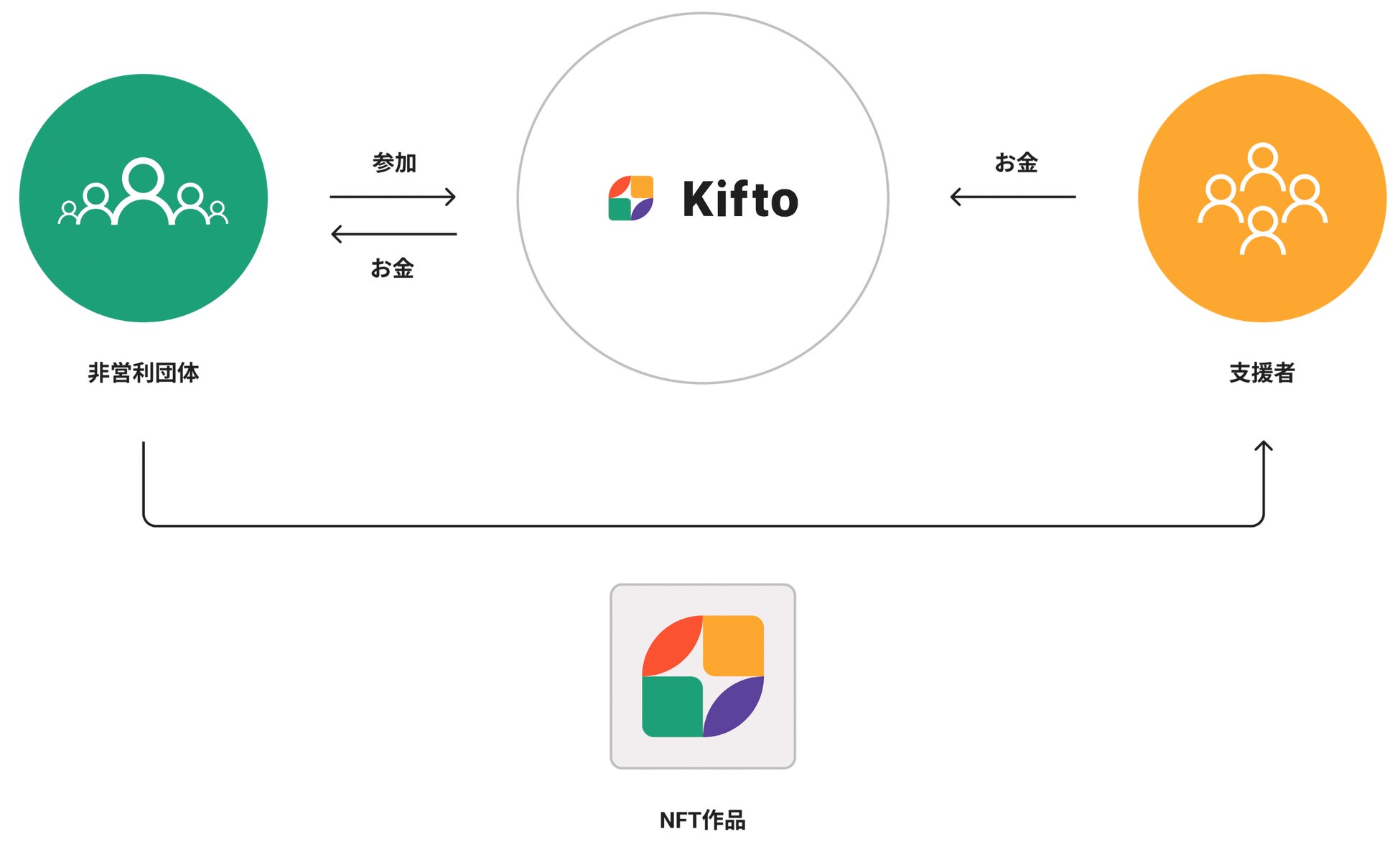 Kiftoとは、寄付をすると、NFT画像(NPO活動画像など)が届く新たな寄付サービスです。