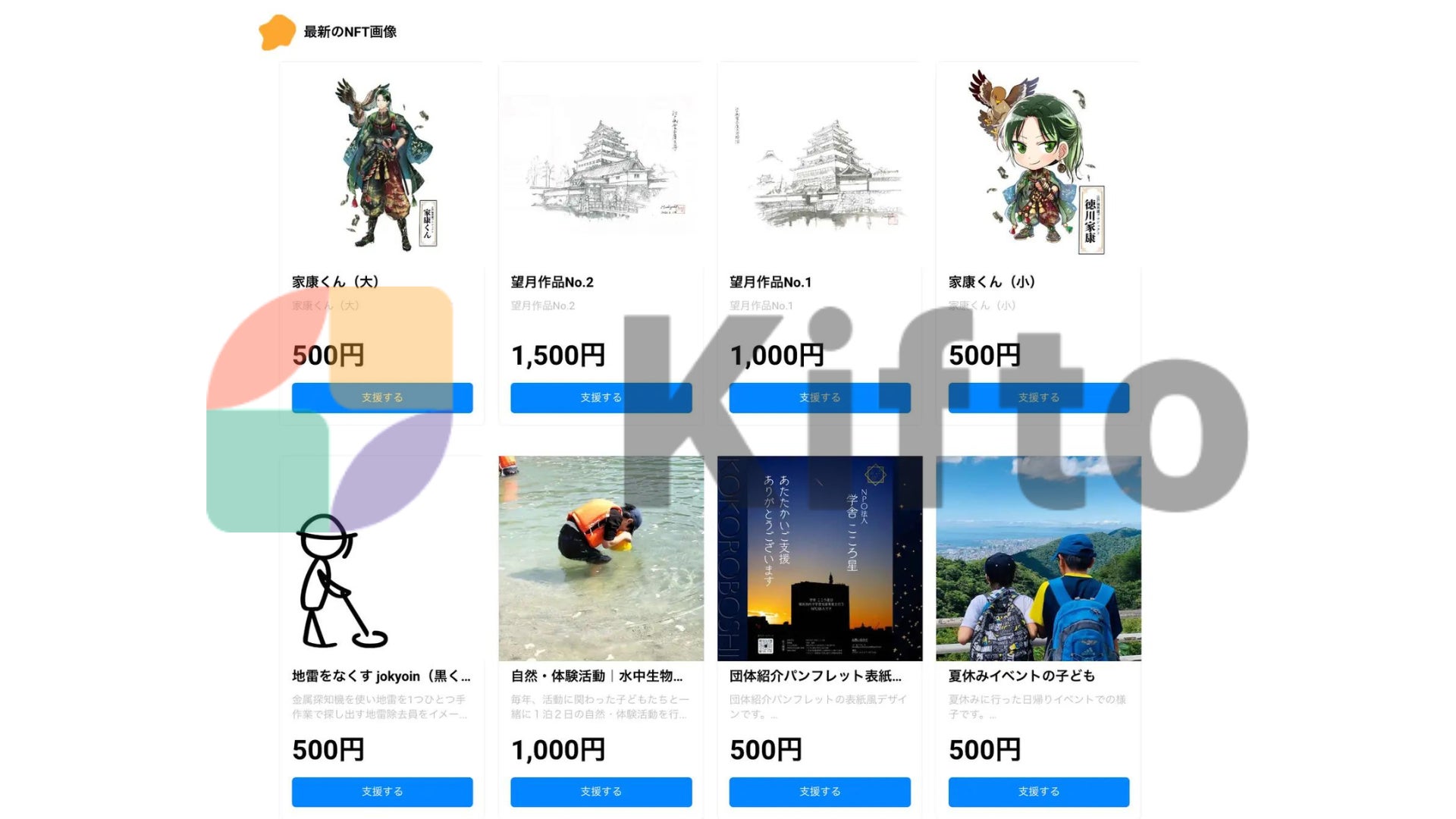寄付をすると、NFT画像(NPO活動画像など)が届く、新たな寄付サービス「Kifto」にて、寄付の募集を開始!寄付で応援してくださる方、お待ちしております!