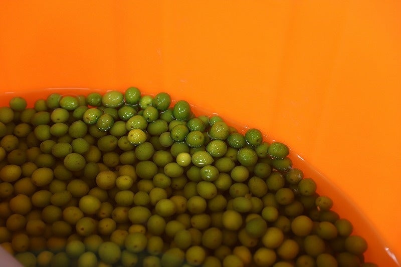 今年は厳しい暑さの中でも、恵みの雨が多く降ったことで生育も早く、実太りの良いハリのある果実が育ちました。新漬けオリーブは熟す前の約2ヵ月間、今だけしか味わえない季節限定の特産品です。
